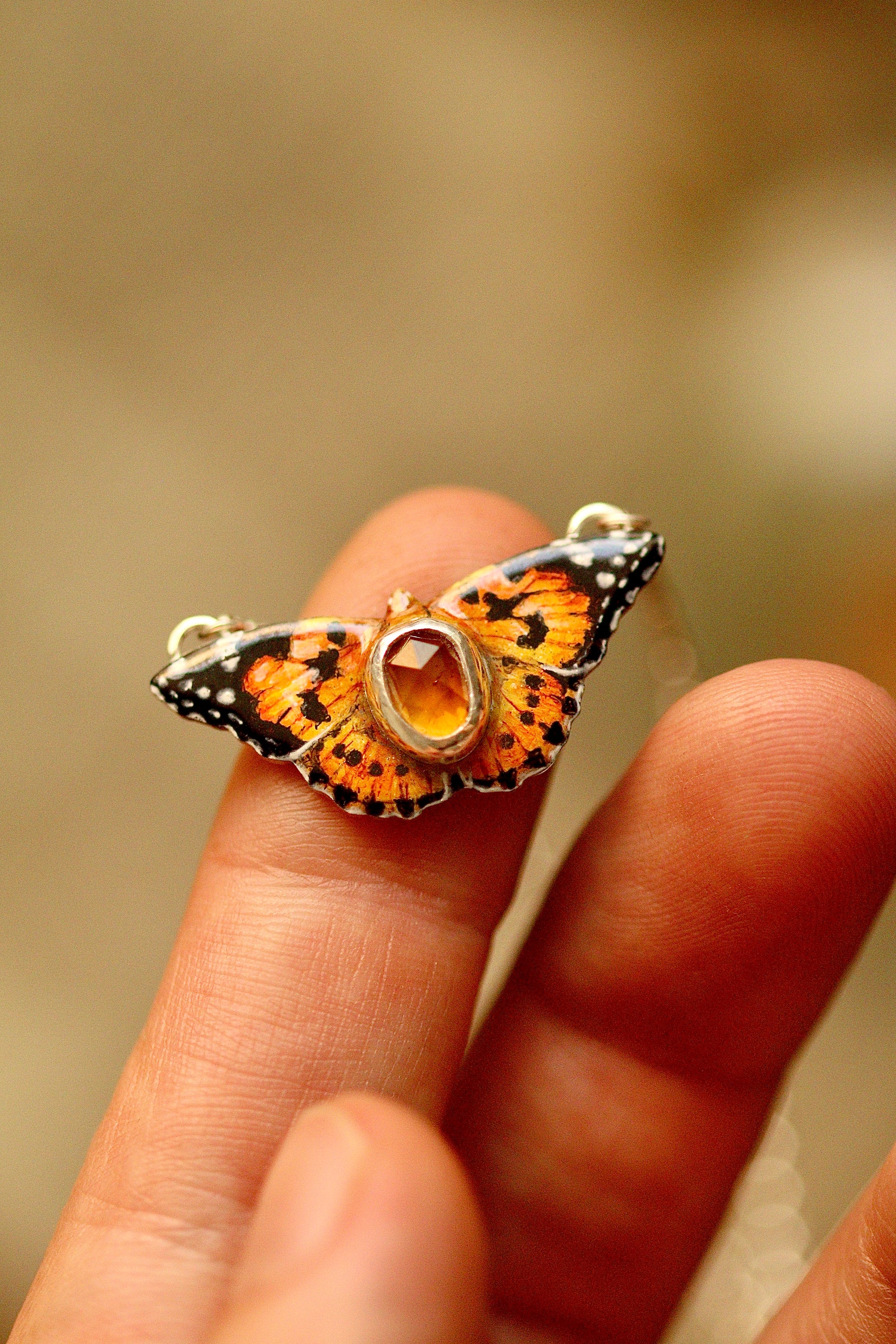 The photos in this listing show just some of the examples of what kind of butterfly or moth pendant you are able to preorder. I also have many examples of past work on my Instagram. They can be paired with stones other than those that have been used in the example photos. I regularly have a variety of stones in stock including but not limited to: citrine, pink garnet red garnet, London blue topaz, tanzanite, rainbow moonstone, white moonstone, sapphires (in every color of the rainbow) opals, labradorite iolite and peridot.